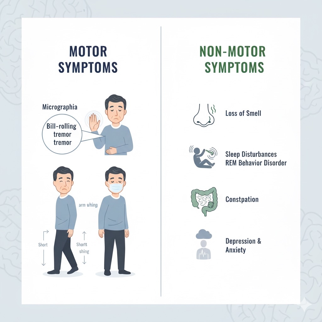 파킨슨병은 운동 증상 이전에도 수면, 후각, 감정 조절 기능에 변화를 일으킬 수 있습니다.
